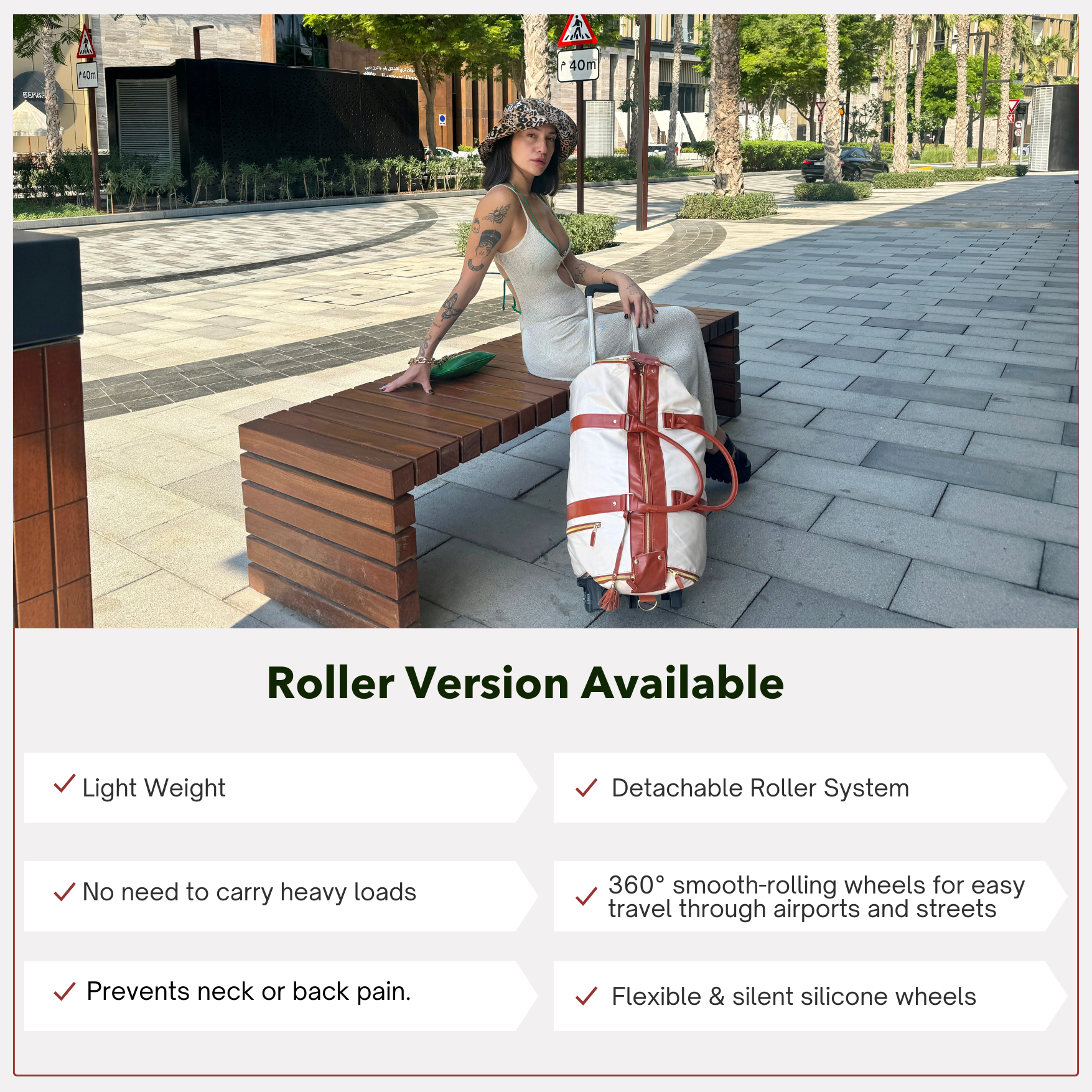 Removable, high-quality, light weight and comfortable wheels. Folds up and goes into the bag if needed, upgrading the Luxe MegaBag experience, and making it easier for you to carry.
